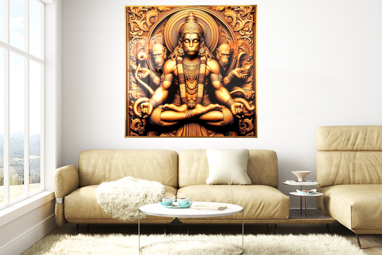 The Lord Hanuman Divine Wall Art depicts the powerful and revered deity Hanuman, symbolizing strength, devotion, and courage. With vibrant colors and intricate details, this artwork radiates divine energy, making it a perfect addition to any space that seeks protection, positivity, and spiritual upliftment. It serves as a reminder of unwavering devotion and strength in the face of challenges.